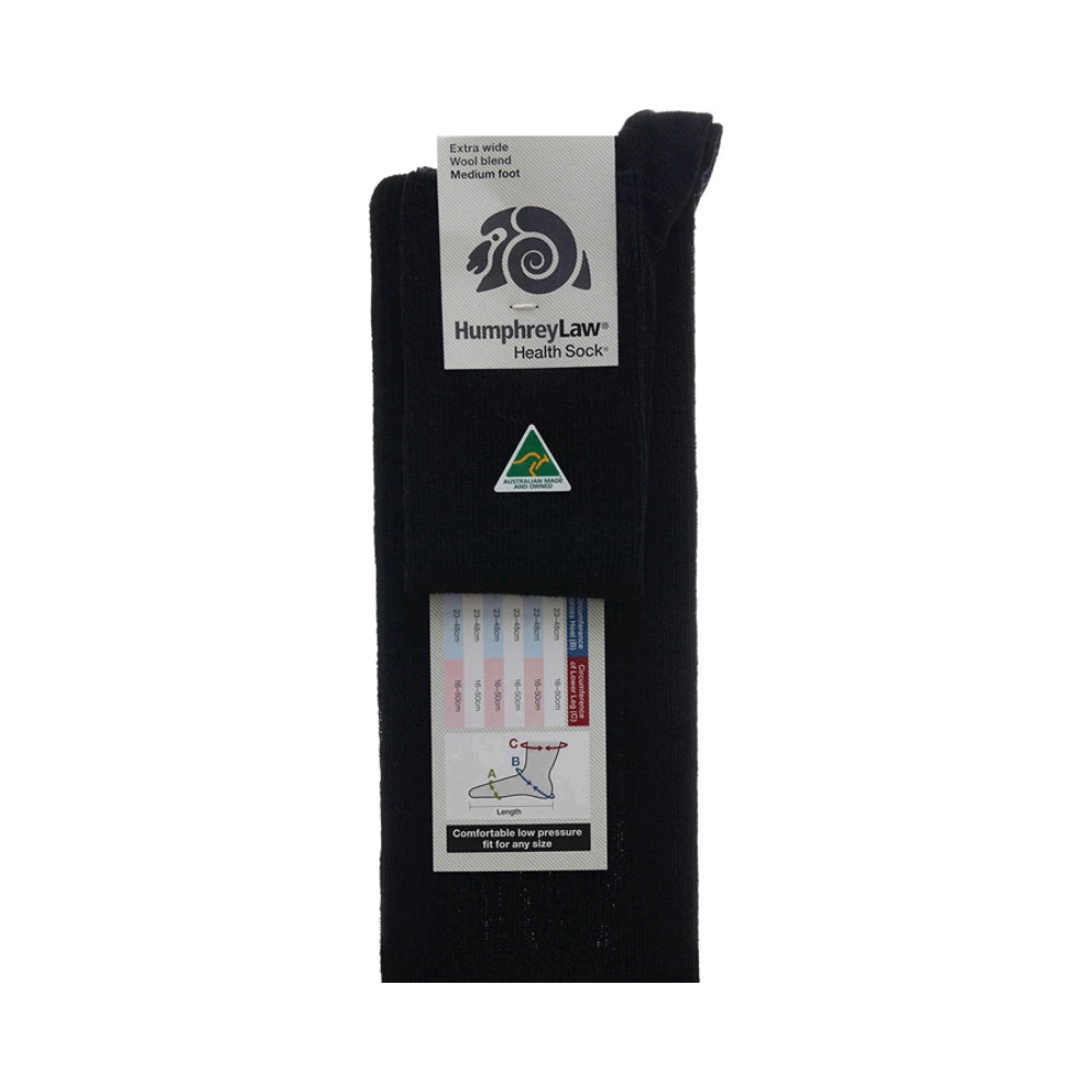 This extra large sock is a soft Health Sock® made with fine merino wool blended with nylon for a long life. It is knitted with a rib to allow extra stretch around the foot and leg and to provide a firm fit so that the sock does not slip or become baggy. Extra large socks are knitted wider than a normal sock to fit larger feet which are usually wider or more bulky. As socks are a knitted fabric, when they are stretched width-ways the sock necessarily becomes shorter. Minimum leg and foot pressure is achieved by using twisted wool/nylon for stretch instead of elastane. This is a hardwearing sock suitable for year-round wear.