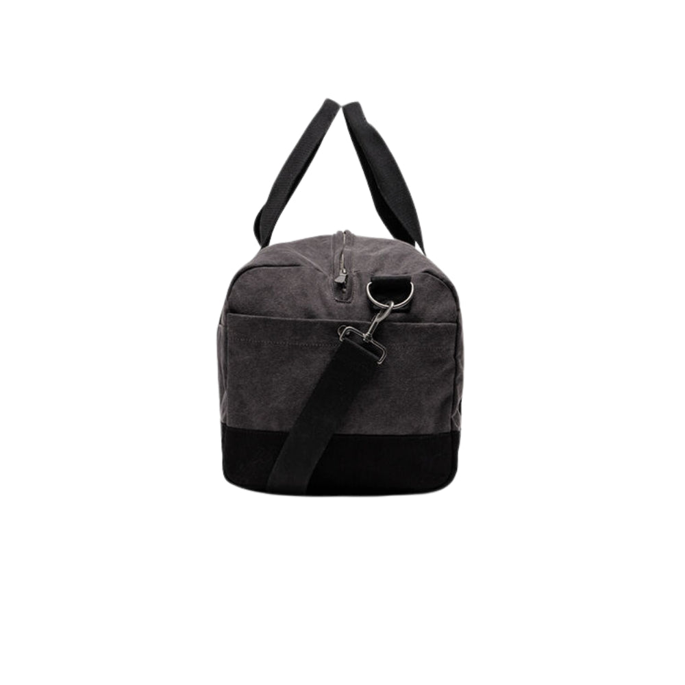 The Foxton Duffle is a larger size washed cotton canvas bag that is perfect for travel, gym or a carry all. The base is made from a heavy weight canvas for durability. The Foxton features two end press stud pockets, a side zip pocket, and an internal pouch pocket for devices. It has 2 sturdy handles and an adjustable, removeable shoulder strap.