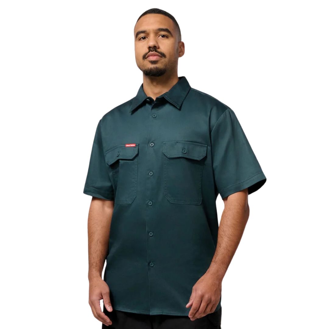 Form meets function in this heavy duty, short sleeve, open front, pre-shrunk cotton drill shirt. Features a pleated back for added movement and a two piece collar for extra sun protection.