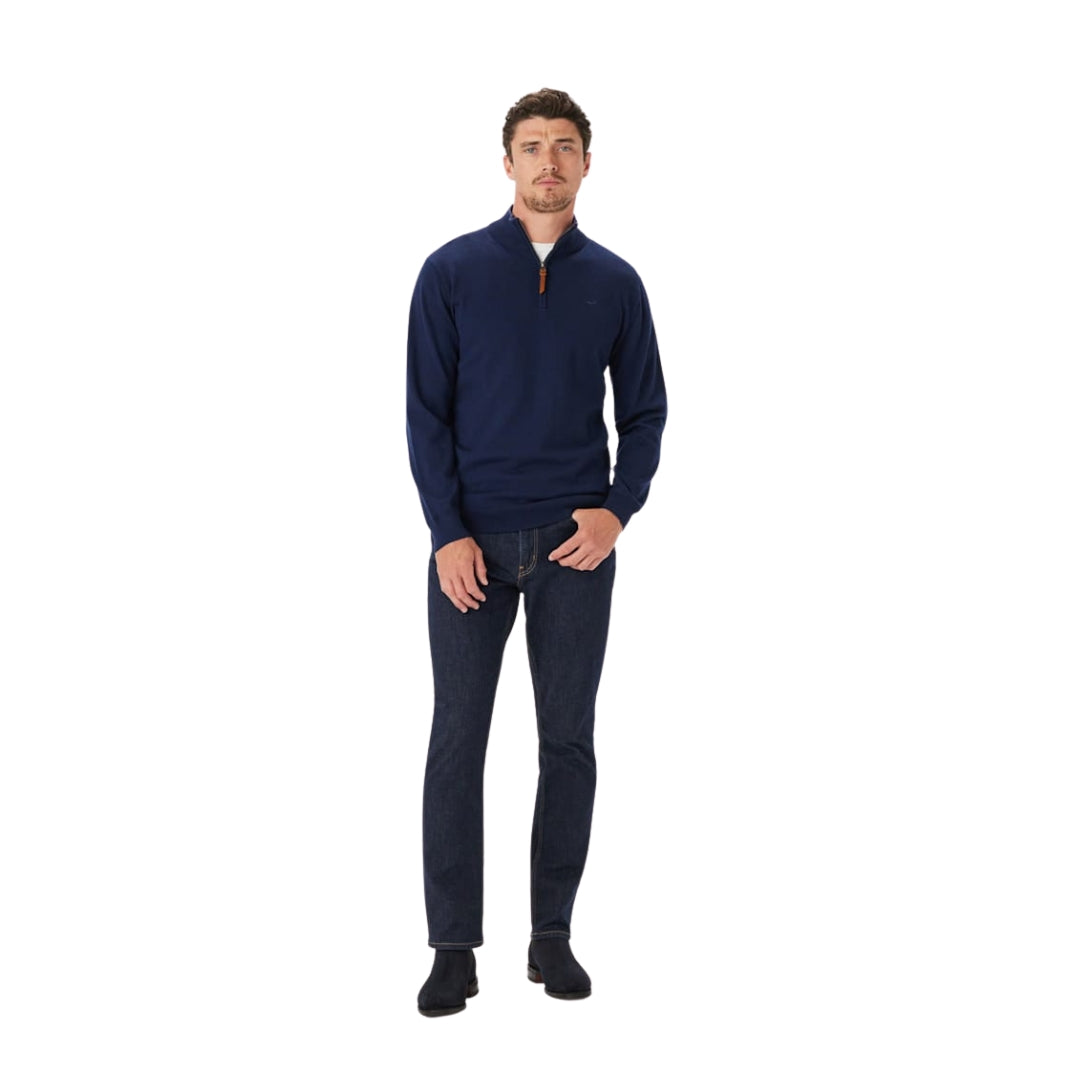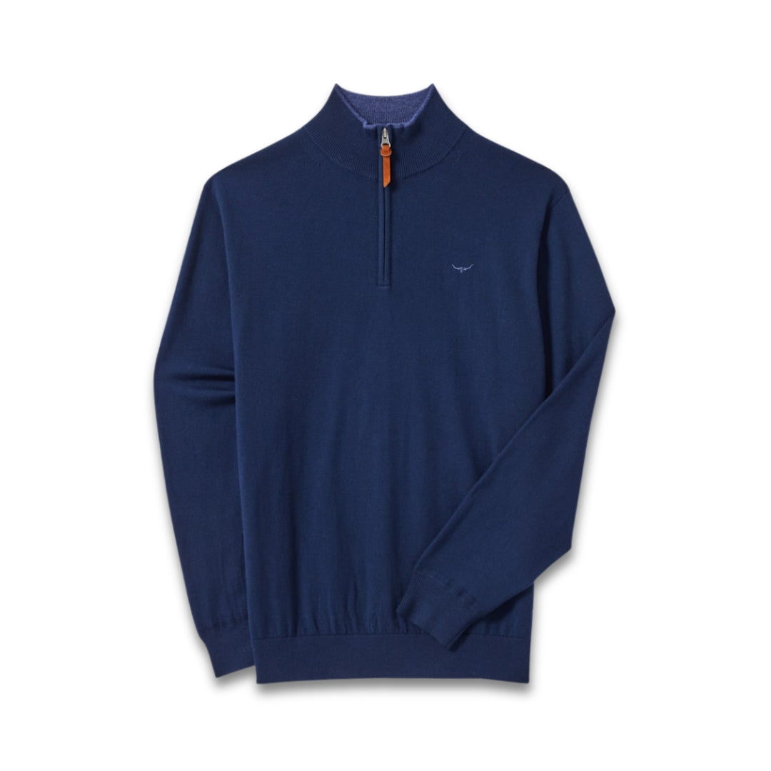 This quarter-zip knit features a branded leather puller, full-length sleeves and a funnel neck with branded leather puller. Crafted from Australian extra-fine Merino wool in a fine jersey knit.