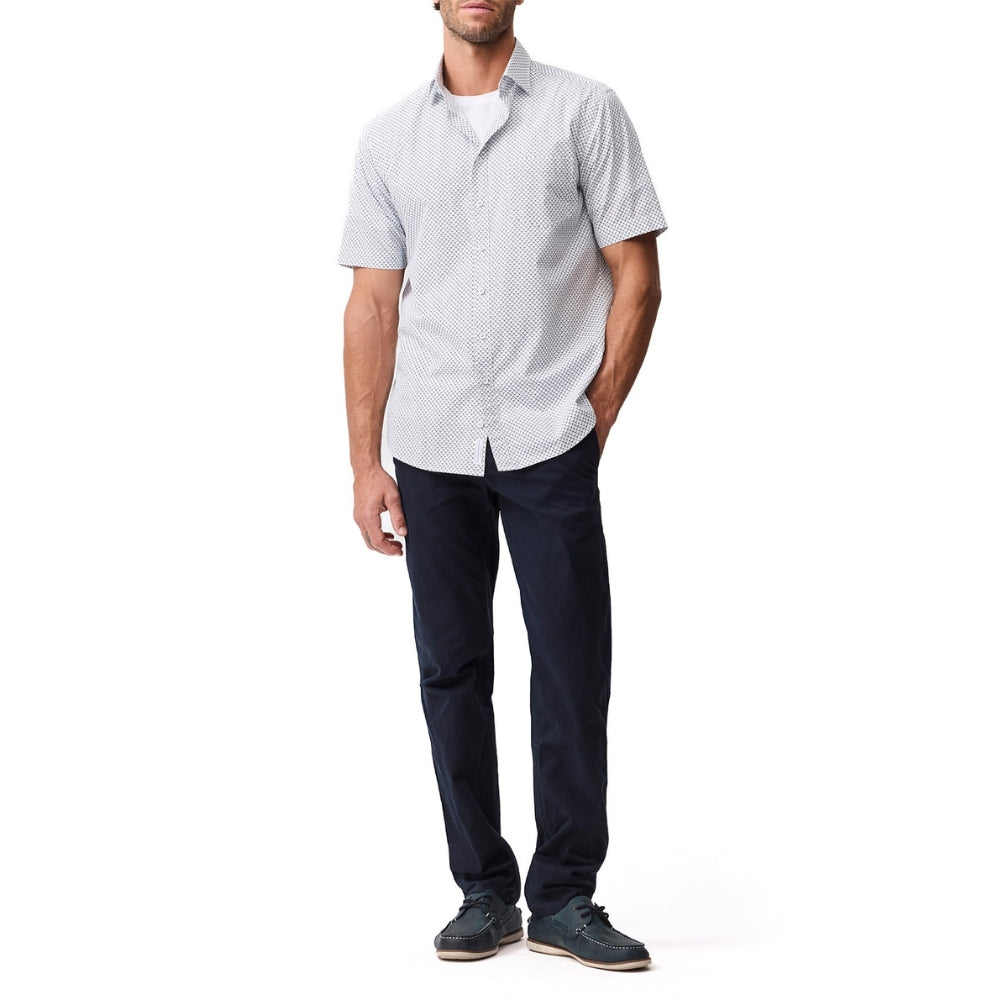 The Fourviews shirt features a subtle, linear, bird print on a fresh white base making it a versatile, easy way to elevate your summer outfit. Crafted from 100% Cotton and designed in our comfortable Original Fit, this shirt can be worn buttoned up for a refined look or open over a t-shirt for a more casual vibe.
