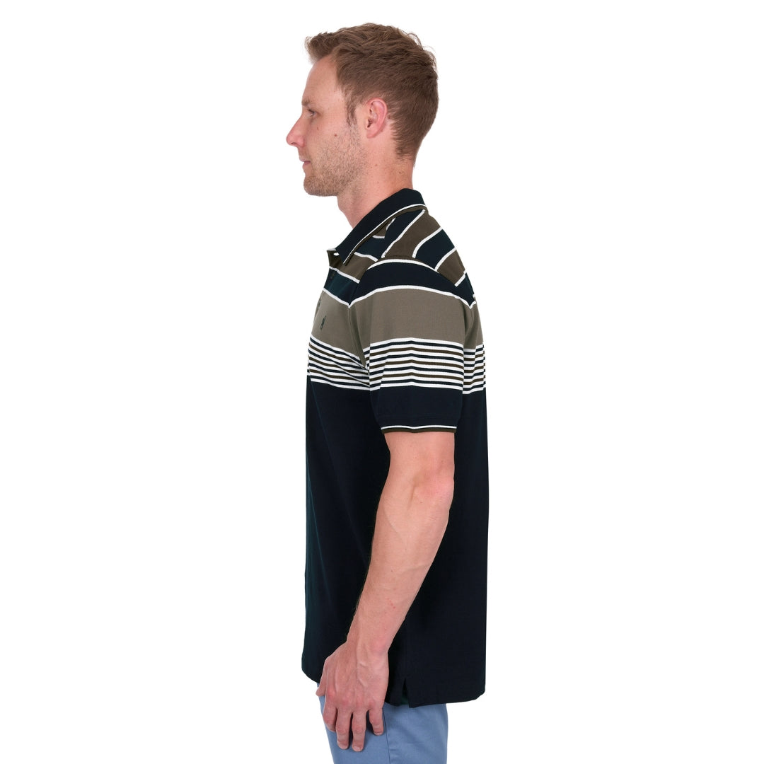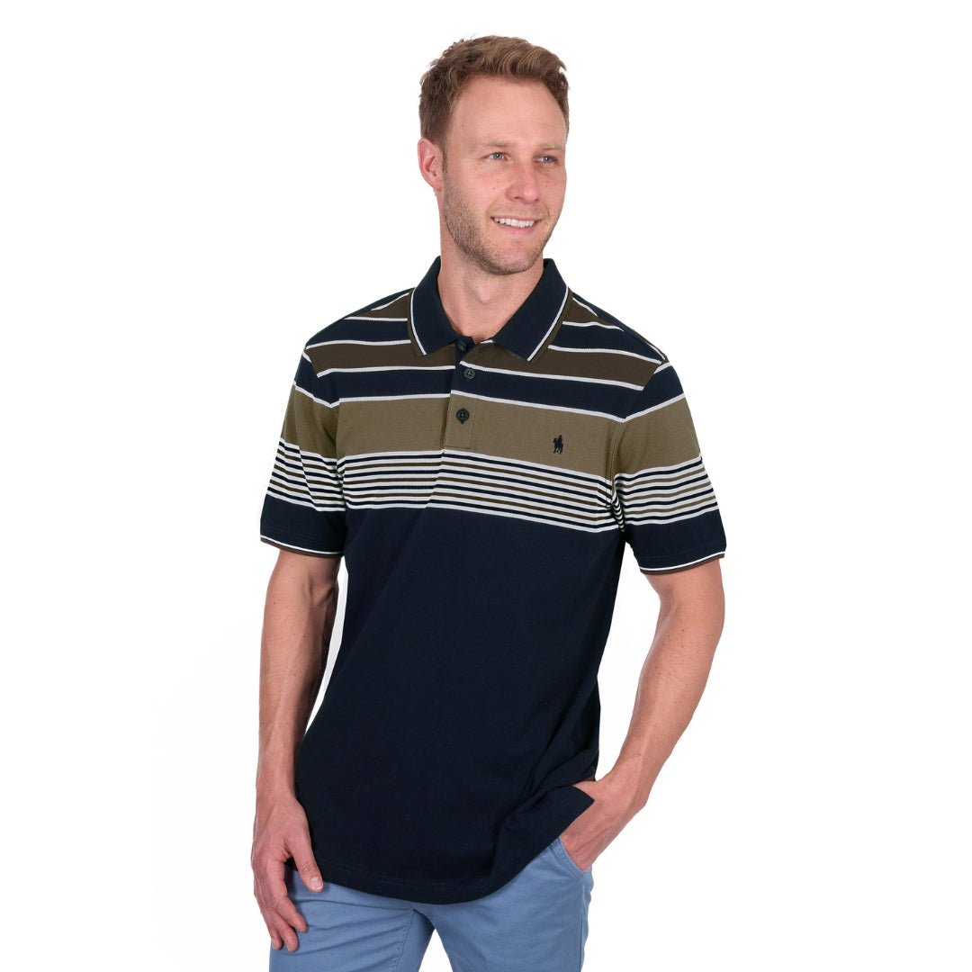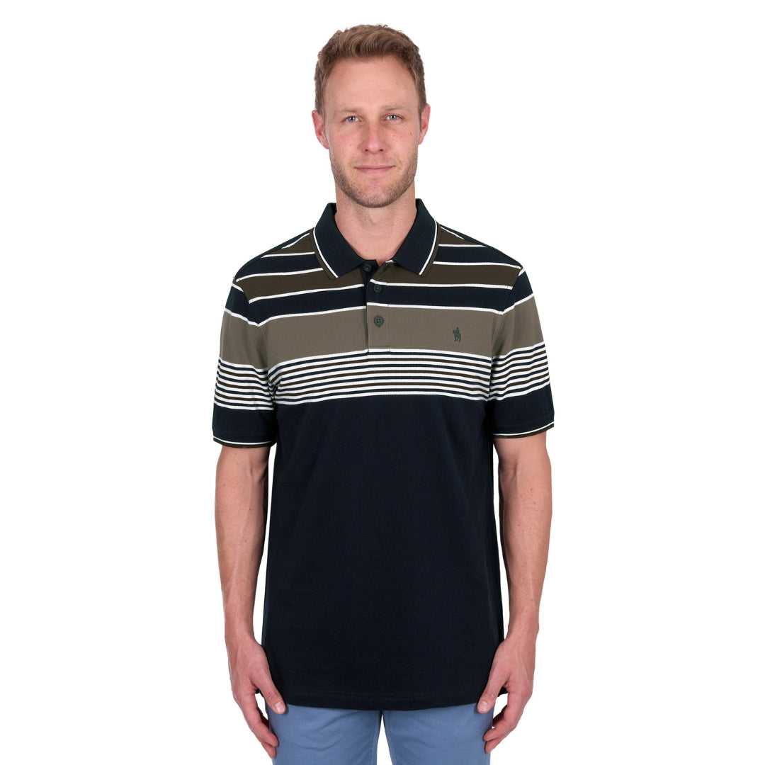 Hard-wearing stripes that don’t quit. The Josua Polo brings solid build quality with its 220 gsm cotton pique and multi-colour yarn-dyed design that hides wear and tear. Rugged canvas and herringbone detailing, ribbed collar, and horseman embroidery—this one’s made for blokes who want a polo that looks sharp but handles real life, every day.