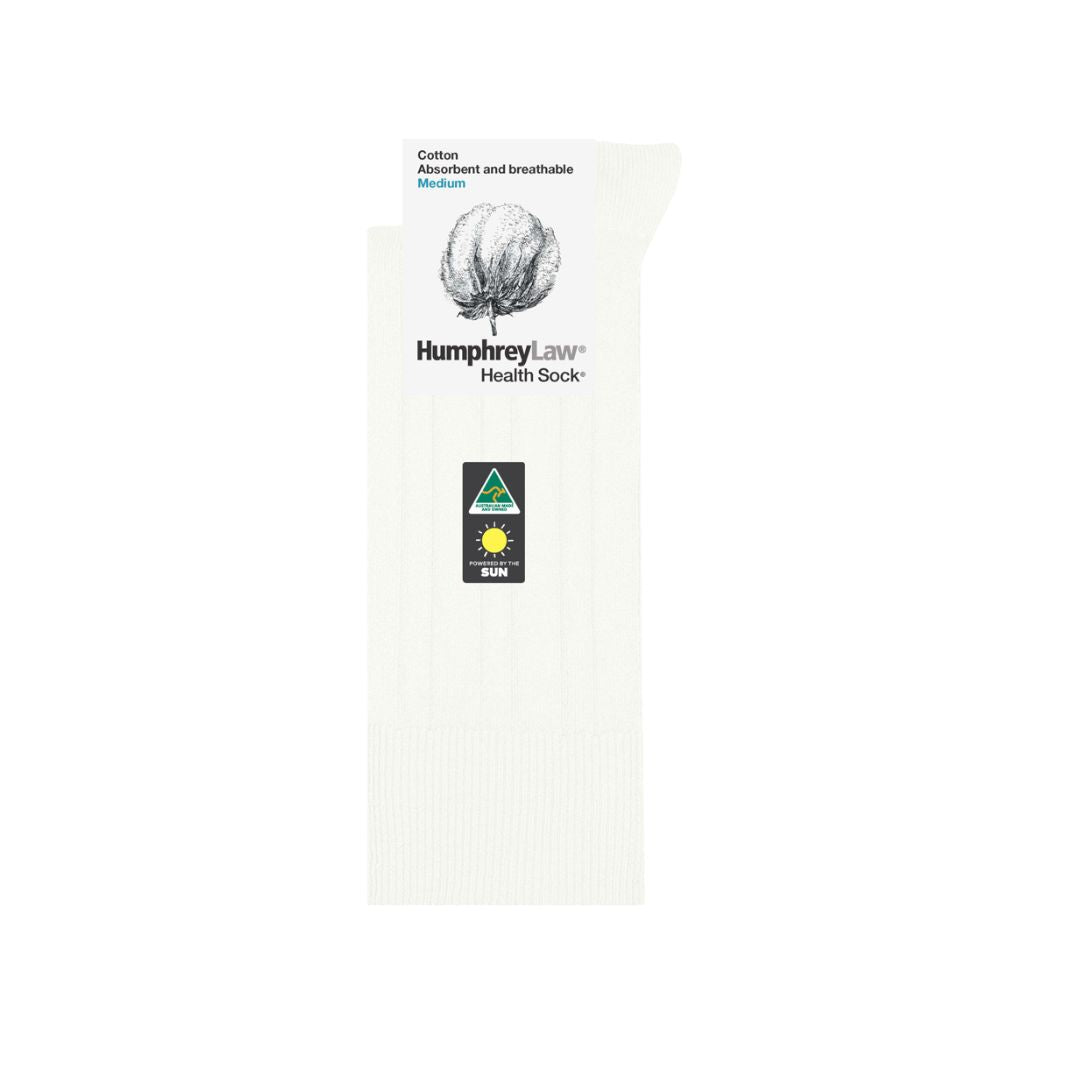 A Men's medium weight hardwearing mercerised cotton sock for maximum comfort in hot conditions. The sock has elegant ribs, which facilitate air circulation around the feet to keep them cool and comfortable. An excellent business sock with a relatively thick yet open cotton knit. A Health Sock® with no tight elastic top.