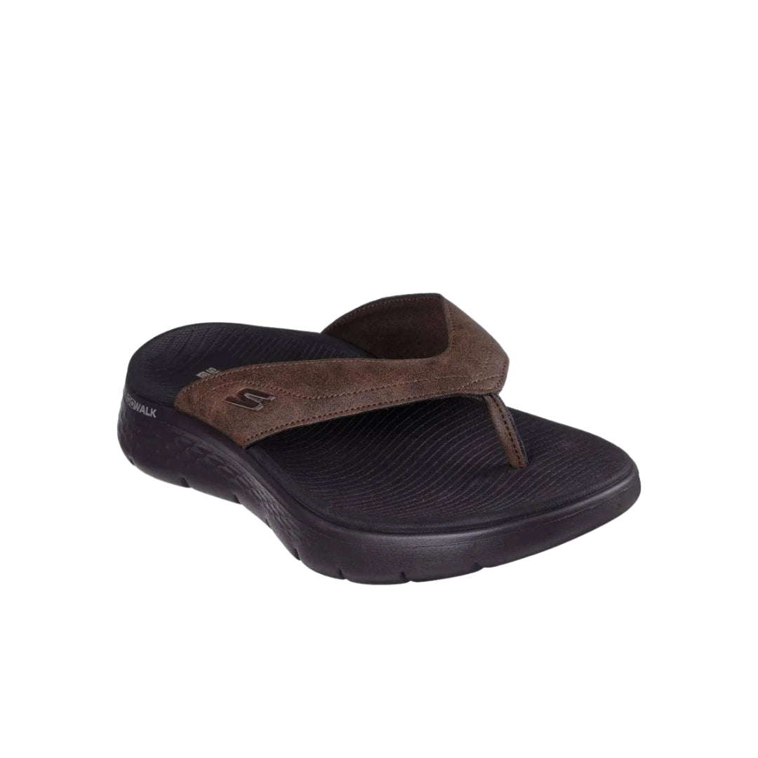 Take charge of your casual comfort wearing Skechers GO WALK™ FLEX Sandal - Vallejo. This 3-point walking thong sandal features a synthetic wide band upper with a contoured Goga Mat® footbed and lightweight ULTRA GO® cushioning.