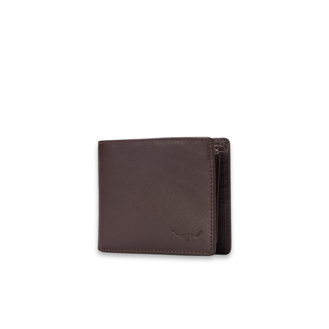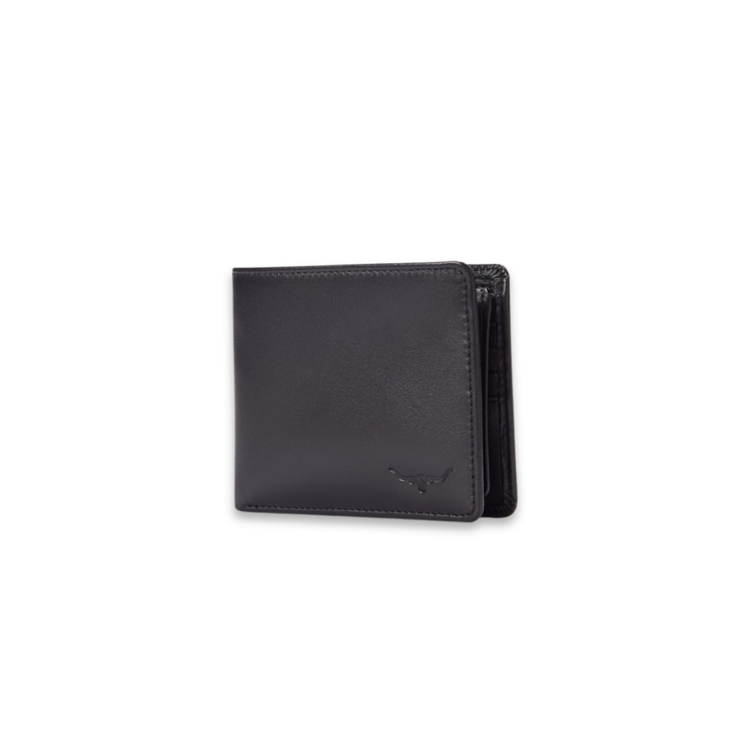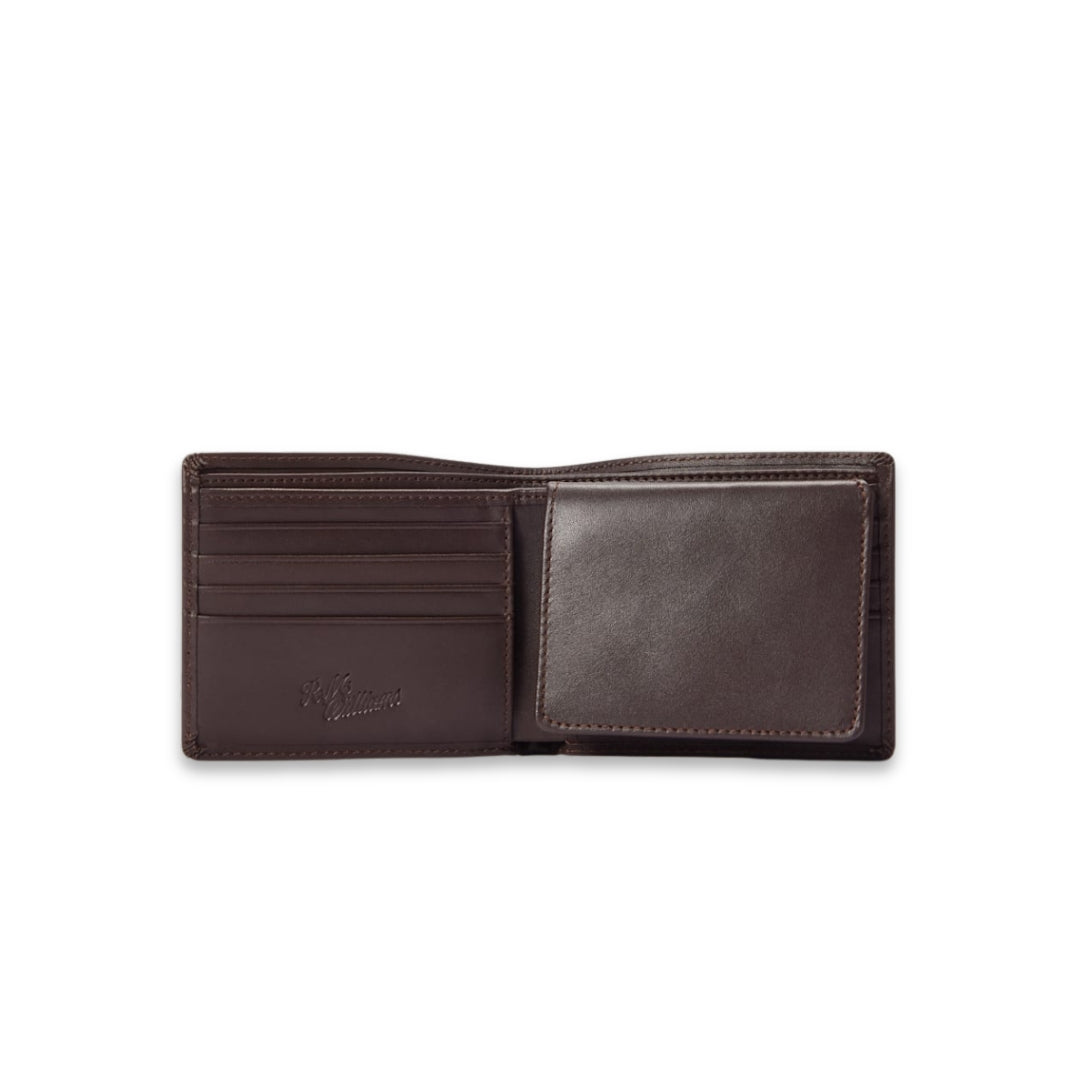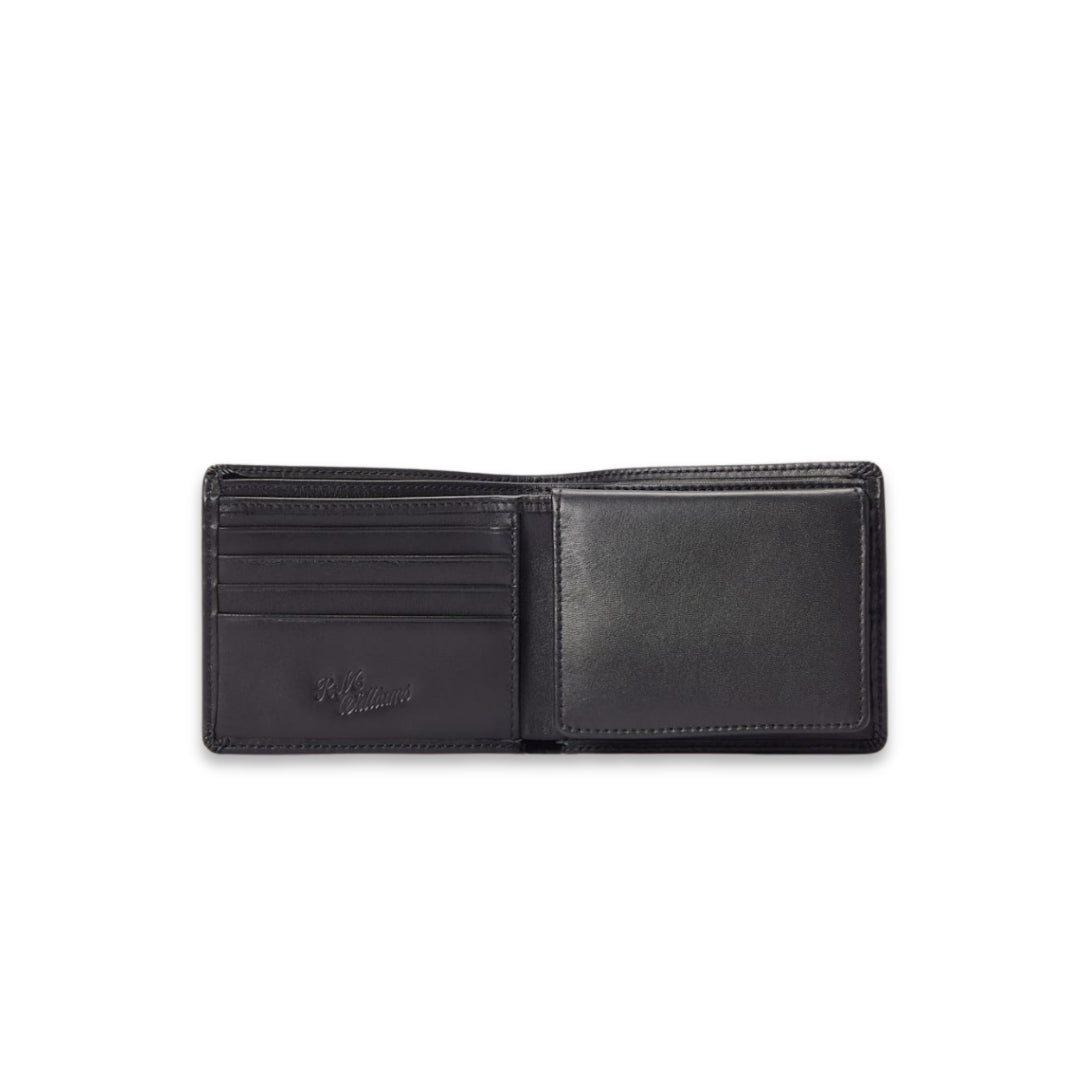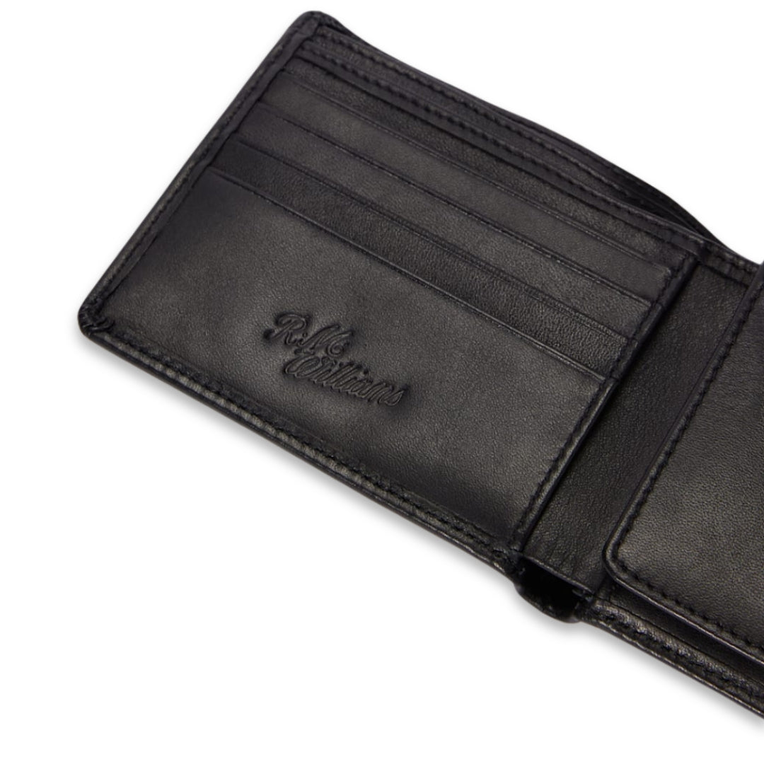 The trifold wallet is features a range of compartments for notes and cards, as well as an extra flip-up window pocket for additional storage.